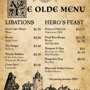 Get ready to feast like a true adventurer at Georgian Bay FanCon! This year, food is being served up by none other than The Dam Pub, a local Meaford favourite known for its hearty meals and cozy charm. Their special “Ye Olde Menu” brings a fun, fantasy twist to convention dining — with options ranging from the mighty Final Boss…